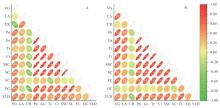 A:紫罗兰品种;B:哈密品种;VG:蔓长;LA:叶面积;T/R:蔓薯比值;Pn:净光合速率;Gs:气孔导度;Tr:蒸腾速率;Ci:胞间CO