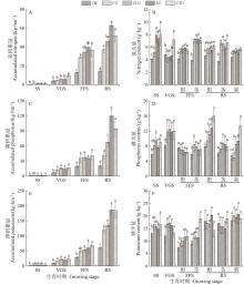 图中不同小写字母表示同一时间不同物候期差异显著(